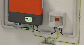 For å beskytte vekselretteren til solenergianlegget optimalt bør det alltid benyttes et apparat til overspenningsvern på DC-siden. På AC-siden bør det minst benyttes et apparat til overspenningsvern på matepunktet til det elektriske anlegget. Er vekselretteren mer enn 10 m ledningslengde fra matepunktet, bør overspenningsvernet gjentas direkte foran vekselretteren på AC-siden.