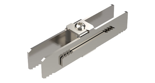 - Nøyaktig festing av jordingsklemmen ved hjelp av en forhåndsmontert glidemutter i sporet til den tilsvarende bæreprofilen