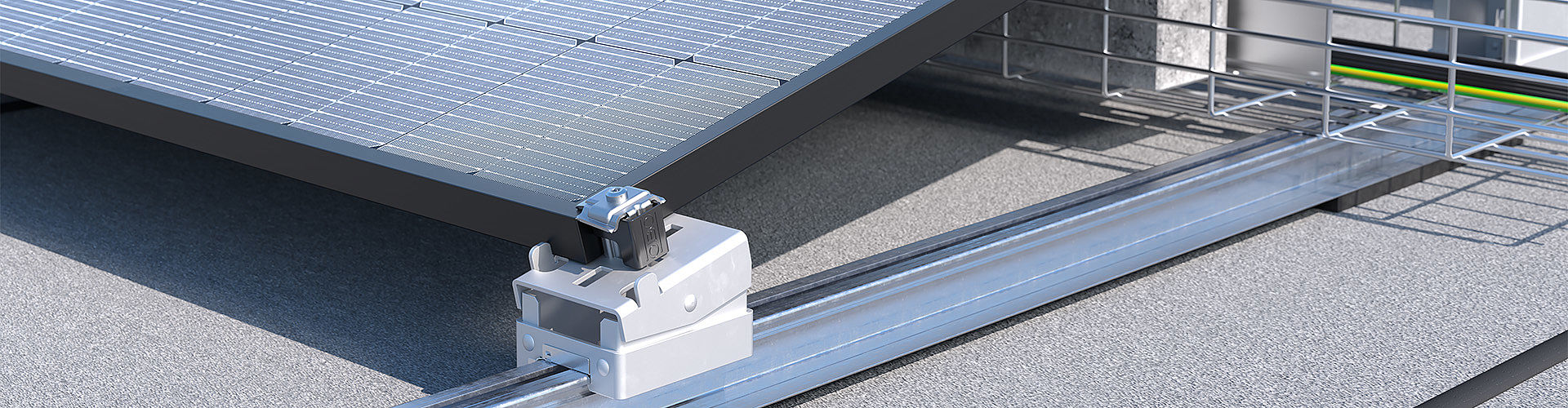 Dersom solenergianlegg plasseres på flate tak, har dette en avgjørende fordel: Solenergimodulene kan monteres uavhengig av en forhåndsdefinert takretning. Vårt Magic PV Flat Basic-system gir enda flere fordeler med en slank produktportefølje som tilbyr størst mulig fleksibilitet. Monteringssystemet for anlegg med flate tak har lang levetid, kan belastes sterkt og kan installeres raskt uten skruer eller annet verktøy takket være Magic-klikktilkoblingen. Det fleksible mønegapet muliggjør en trinnløs systemdesign. Magic PV Flat Basic kjennetegnes av et integrert system for kabellegging og samtidig ballastering. Dette kan for eksempel gjøres ved bruk av gitterrennesystemer.