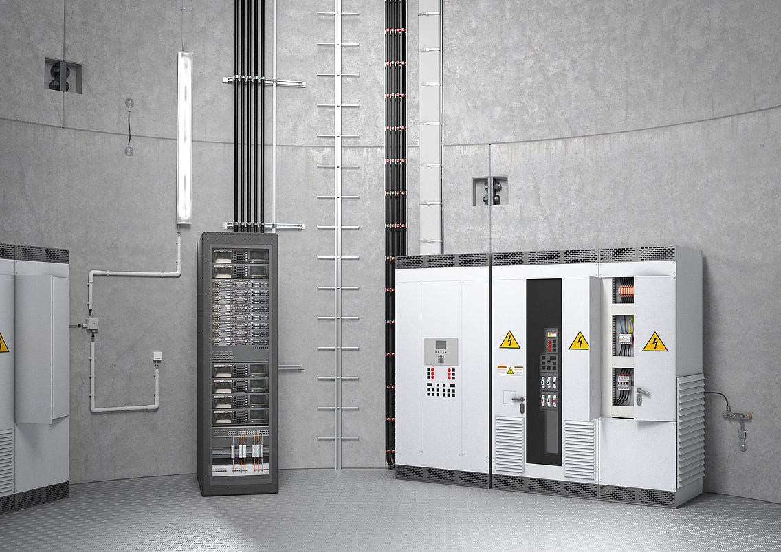 I tårnbasen befinner det seg ofte også koblingsskap, og sammen med det anleggets overspenningsvern. Systemer til overspenningsvern for vindkraftanlegg er av grunnleggende betydning, ettersom anleggene på grunn av sin høyde, form og størrelse er ekstra utsatte for direkte lynnedslag. Anleggene er fulle av elektronisk utstyr som kan skades av overspenninger. Men ikke bare de enkelte elektroniske komponentene kan bli skadet, det er også fare for en derav resulterende totalsvikt hos anlegget, med tilsvarende kostnader for reparasjon og manglende avkastning.