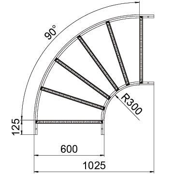 ProduktbeskrivelseBend 90°, horisontal med sveiset sprosse, for alle kabelstigetyper med profilhøyde 60 mm.