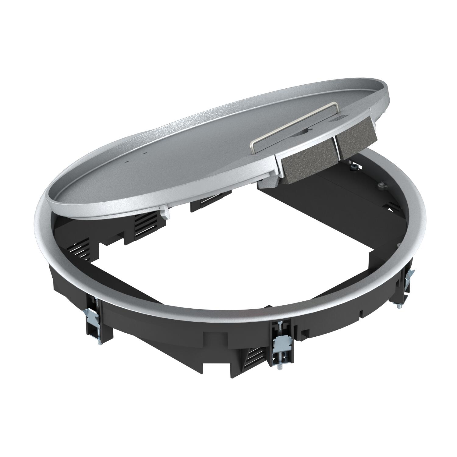ProduktbeskrivelseApparatinnsats med bøylehåndtak for opp til 12 modul 45-enheter i 3 universalbokser UT4, til bruk i kanalsystemer og systemgulv innvendig.