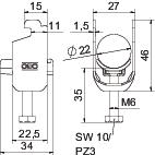 ProduktbeskrivelseBøyleklammer med N-fot, enkel, med trykkbrakett av polypropylen. For vertikal og horisontal montering av 1 enkeltkabel til C-profilskinne. For slisselengde 11–12 mm. Med 1-gjenget skrue på trykkbrakett, universal sekskantskruehode SW10, med spor og tverrspor. Egnet for montering innendørs og i uteområder. Bruk av en motbrakett anbefales.