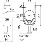 ProduktbeskrivelseBøyleklammer med U-fot, enkel, med trykkbrakett av polypropylen. For vertikal og horisontal montering av 1 enkeltkabel til C-profilskinne. For slisselengde 18–22 mm. Med 1-gjenget skrue på trykkbrakett, universal sekskantskruehode SW10, med spor og tverrspor. Egnet for montering innendørs og i uteområder. Bruk av en motbrakett anbefales.