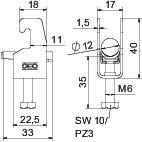 ProduktbeskrivelseBøyleklammer med U-fot, enkel, med trykkbrakett av polypropylen. For vertikal og horisontal montering av 1 enkeltkabel til C-profilskinne. For slisselengde 18–22 mm. Med 1-gjenget skrue på trykkbrakett, universal sekskantskruehode SW10, med spor og tverrspor. Egnet for montering innendørs og i uteområder. Bruk av en motbrakett anbefales.
