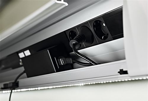 Kanalens edle utseende og høykvalitetsdesign kan fremheves enda mer ved ønske. en valgfri LED-lyslist kan installeres på undersiden av GAD-installasjonskanalen. Vegger og områdene under kanalen er dermed diskret belyst.