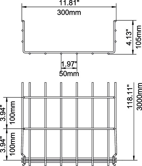 ProduktbeskrivelseGitterrenne med formtilpasset skjøtestykke med profilhøyde 105 mm.