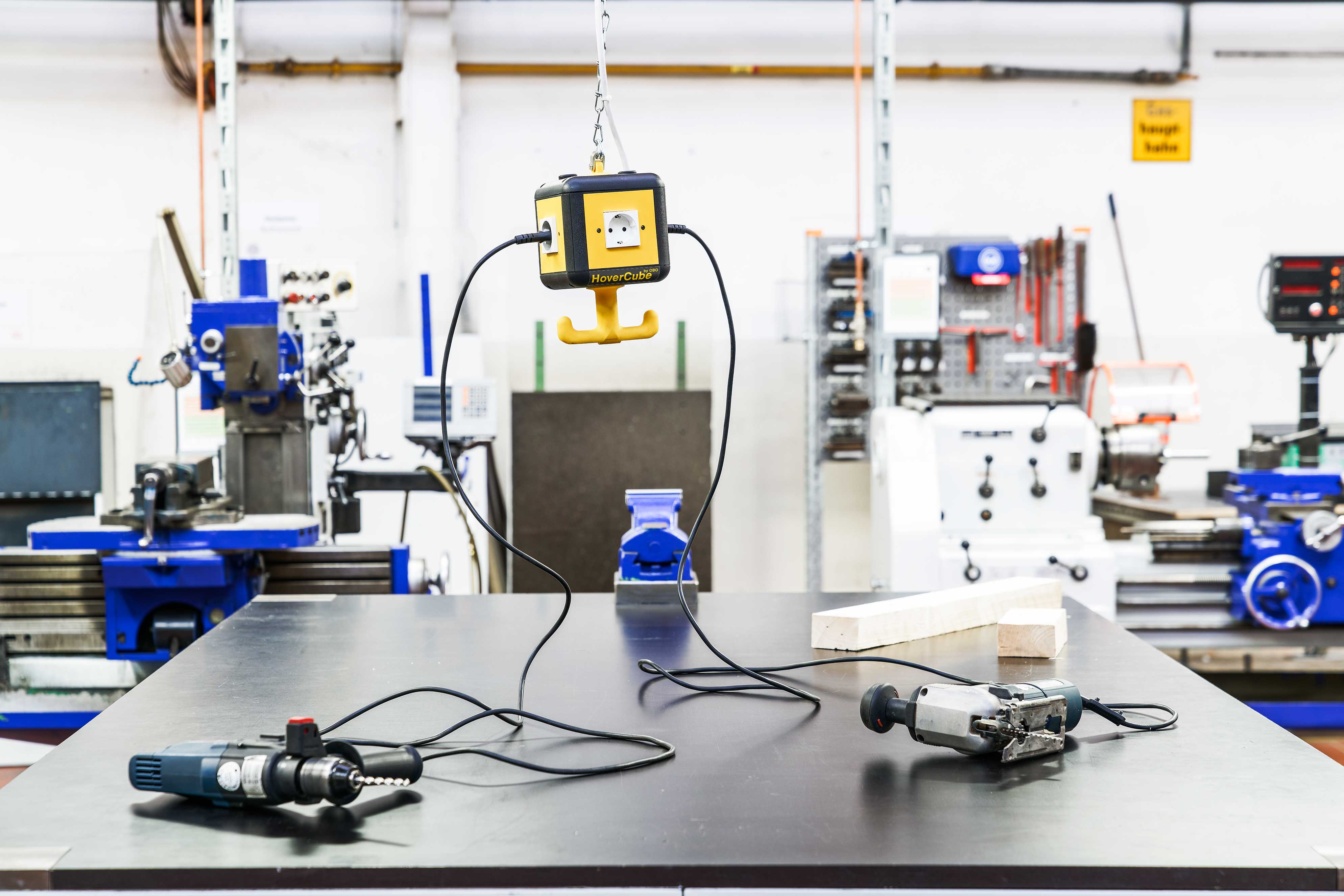 Her kan OBO Bettermann tre støttende til: Med de plassbesparende HoverCubes av typene VH og VHF tilhører det nå fortiden at slanger og ledninger ligger i veien. De kompakte hengefordelerne kan henges ned fra taket og plasseres fritt i rommet. De bidrar derfor til sikkert og rasjonelt arbeid på enhver arbeidsplass.