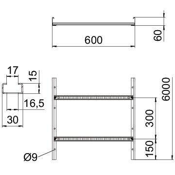 ProduktbeskrivelseKabelstige med sidehøyde 60 mm med sveisede C30-profilsprosser som åpner oppover. Sidevange med buet kant som forsterking og kantbeskyttelse. Festet til utliggeren gjøres med klemstykker type LKS 40. Sprossens slissemål er 16,5 mm, passende bøyleklammer er type 2056.