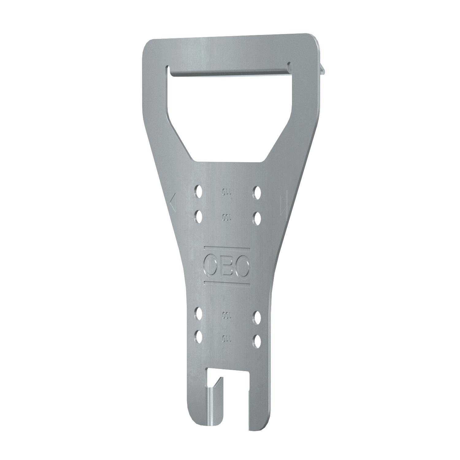 Alternativt kan lokkløfteren også brukes som sjablong for forbinderperforering for kabelrenner som er kuttet på monteringsstedet. For å gjøre dette, vris lokkløfteren 180° og plasseres på kabelrennen. Bruk deretter, avhengig av sidehøyden, den respektive perforerte sjablongen.