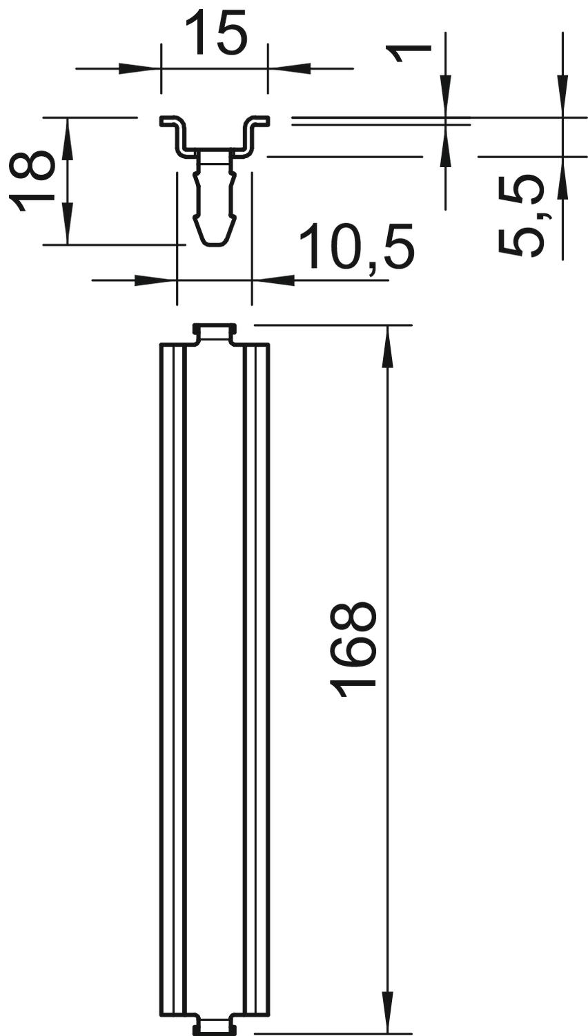 Bredde 15 mm CO2-fotavtrykk (GWP) fra vugge til port 0,071 kg CO2e / 1 Stykke Dimensjon 168x15x7,5 Hullform (ETIM) uten Høyde 5 mm Lengde 168 mm Materiale stål Materialtykkelse 1 mm Overflate galvanisert, transparent passivert Utførelse for T350 på langs Utførelse skinner Bæreskinne DIN EN 60715 - Alle typer