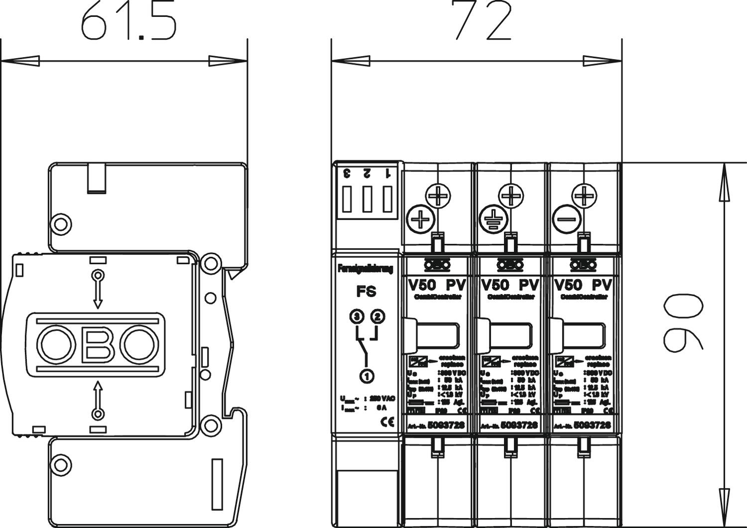 ProduktbeskrivelseV50 kombiavleder type 1+2 for solenergianlegg med FS-kontakt som potensialfri veksler