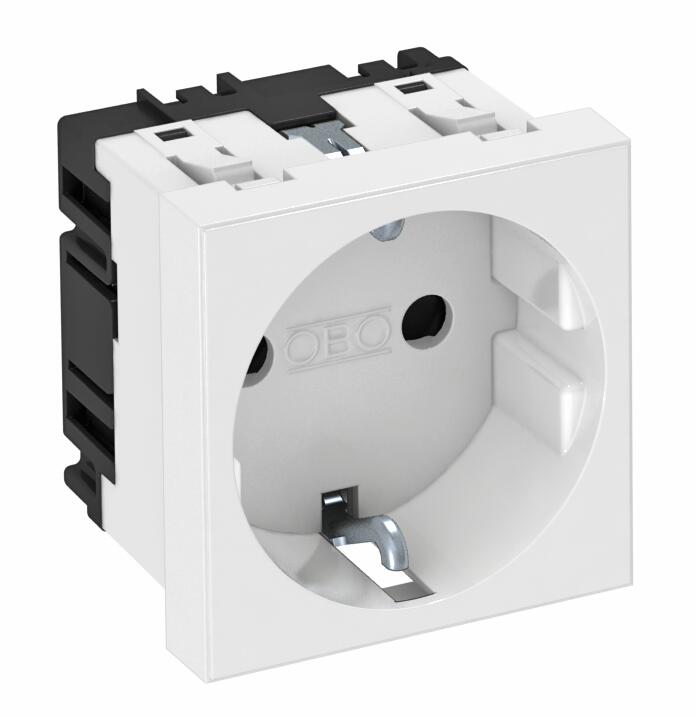 ProduktbeskrivelseJordet stikkontaktenhet enkel 0°, med økt berøringsbeskyttelse, med stikklemmer, 2-polet, 16 A, 250 V~, med koblingsklemmer iht. IEC 60884-1.