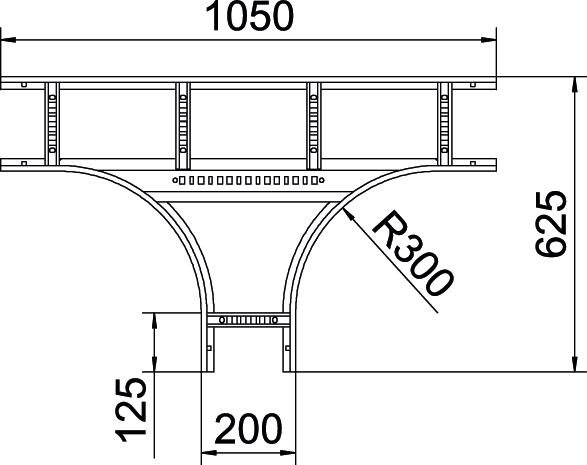 ProduktbeskrivelseT-stykke, horisontalt med sveiset sprosse, for alle kabelstigetyper med sidehøyden 60 mm.