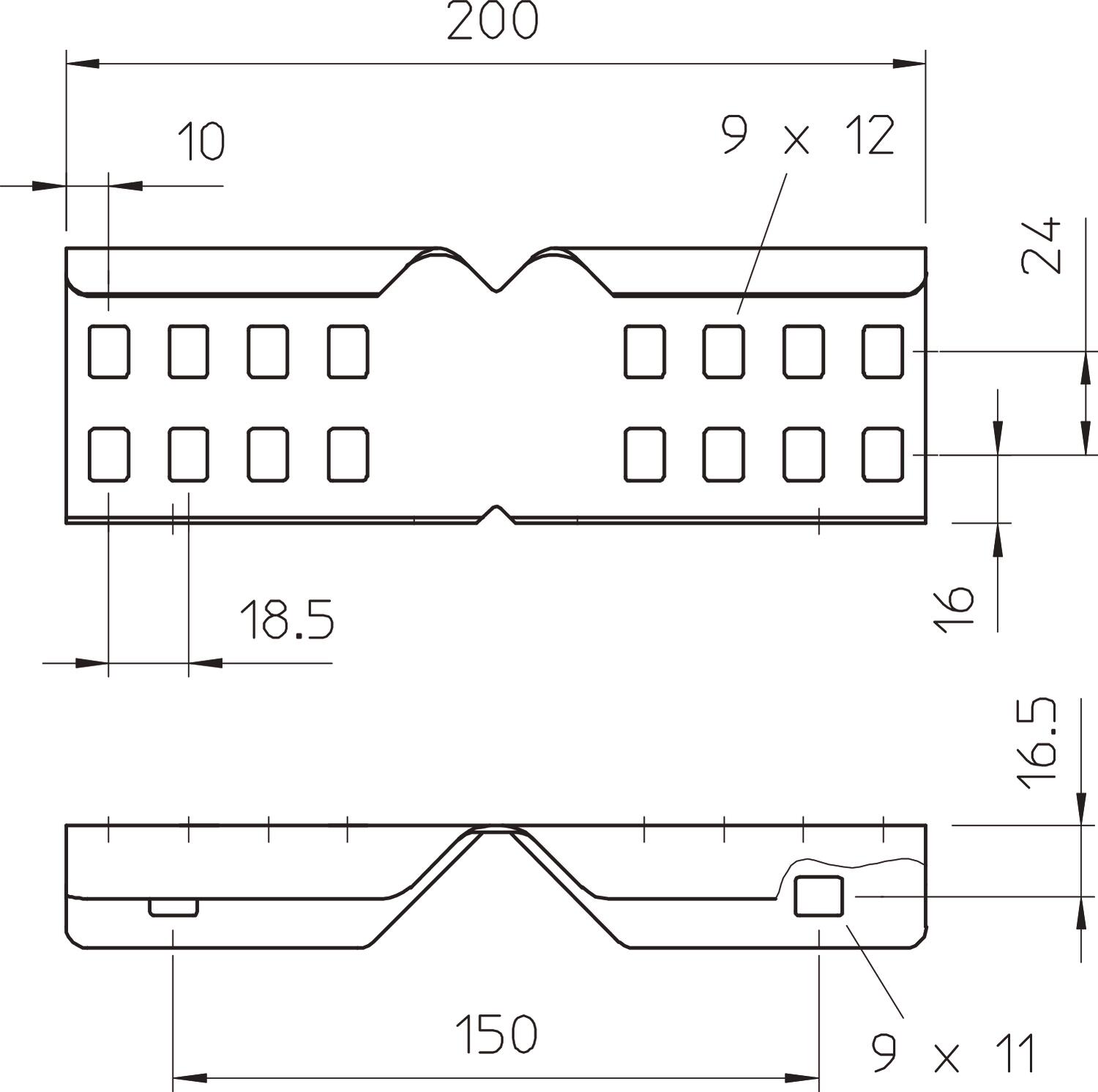 ProduktbeskrivelseVinkelskjøtestykke som ytre skjøtestykke for sammenkobling av kabelstiger og kanaltilbehør med 60 mm profilhøyde og gjennomgående perforert profil.