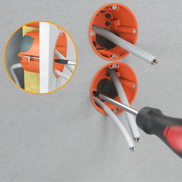 De innfelte og hulromsveggboksene scorer også poeng når det gjelder bærekraft: Hele porteføljen er produsert for å være 100 % halogenfri, noe som sikrer ekstra sikkerhet i tilfelle brann, ved å redusere dannelsen av giftige røykgasser. De lufttette variantene av hulromsboksene er også testet og sertifisert for lydisolering og oppnår en lydisolasjon på 70 dB uten å svekke standard gipsplater.